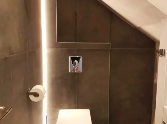 The bathroom is modern and clean, with a shower or bathtub, sink, and toilet. Towels and toiletries are provided for your convenience.